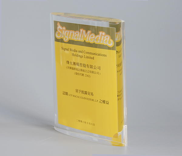這款亞克力熱壓是采用兩片透明亞克力加一張紙加熱后熱壓成一體,成型后中間是無縫的,完全沒有縫隙和任何痕跡,最后按照客戶的要求將外形打磨成圓邊,光滑圓潤(rùn)不刮手。