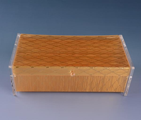 金色華麗的紙巾盒,透明的兩端配合金色的主體,簡約又高貴,高端的酒店與KTV必配的精品.